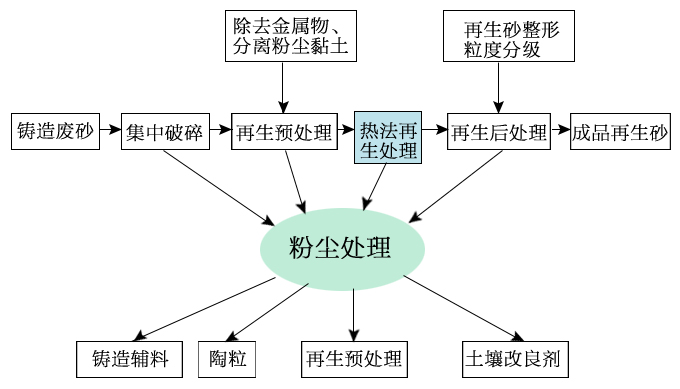 废砂再生过程的废弃物有粉尘、粗渣、金属等。