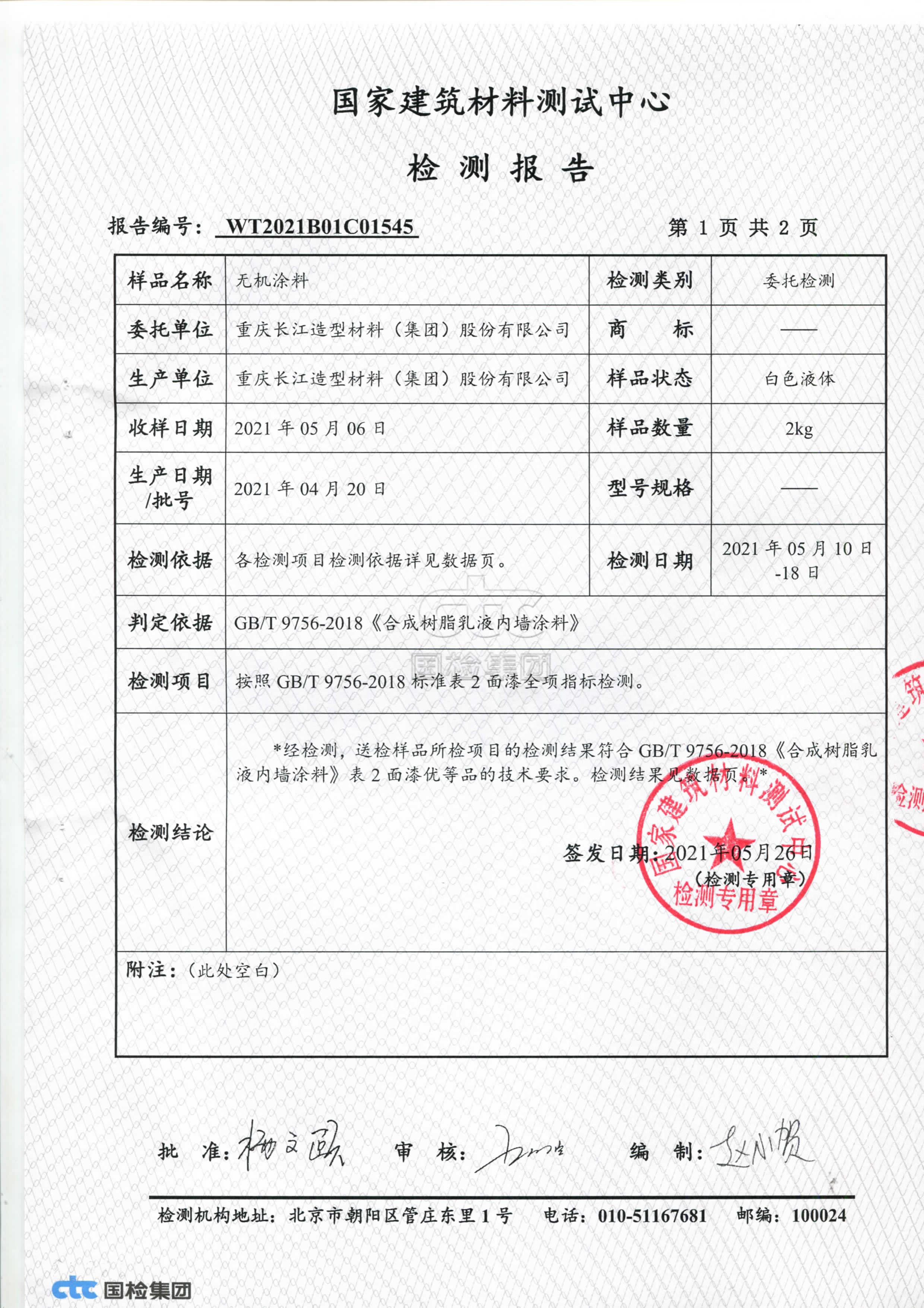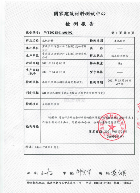 长江无机面涂采用无机硅酸盐作为主要成膜物,配套无机阻燃材料配制而成,可达到A级耐燃要求。同时具备良好的耐久性、抗污性、耐擦洗、环保净味功能。
