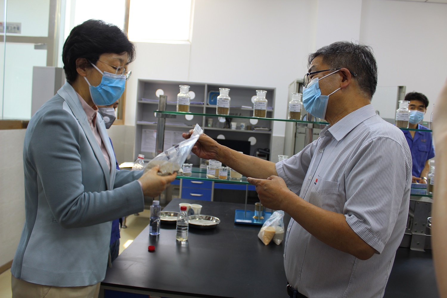 2022年3月15日下午,重庆市委常委、统战部部长李静一行来到重庆片区同兴工厂调研,参观了长江材料支撑剂实验室、建材事业部、技术研发中心,认真听取了长江材料董事长熊鹰对企业产品和发展的介绍。