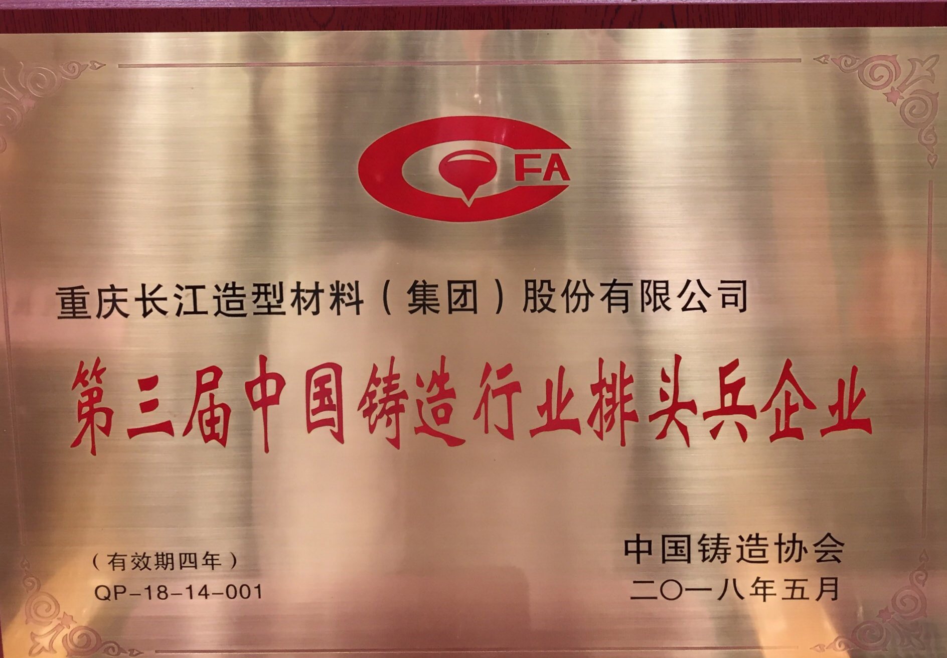 ▲2018年5月 “第三届中国铸造行业排头兵企业”
