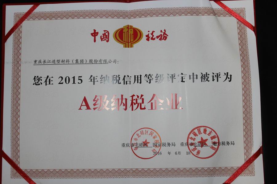 集团公司获2015年A级纳税企业